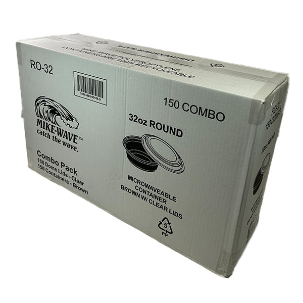 E2E - 32oz ROUND FOOD CONTAINER BROWN BASE CLEAR LID 150EA